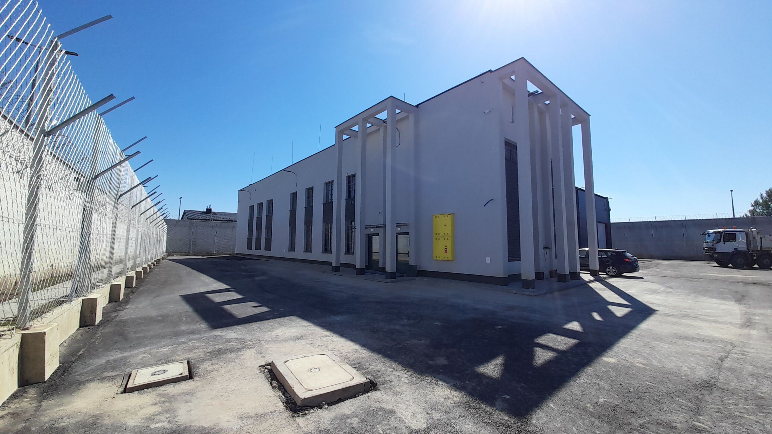 Do naszego zakresu prac należało: budowa budynku wielofunkcyjnego (administracyjno‑usługowego), pawilonu penitencjarnego, domu przejściowego z wykonaniem pełnych instalacji i infrastruktury terenu oraz roboty drogowo-ziemne wraz z zagospodarowaniem terenu. Zamontowane zostały innowacyjne okna, w których nie ma stalowych krat.