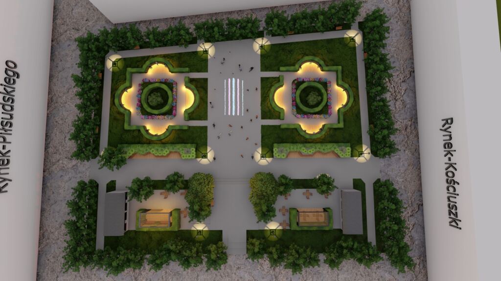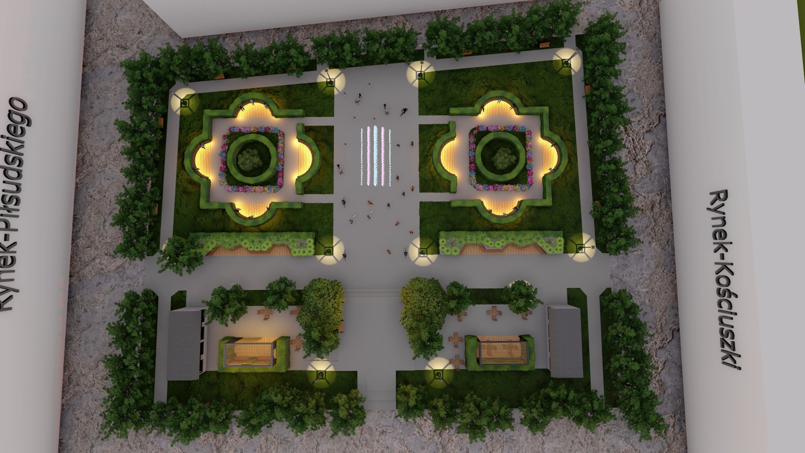 Celem przedsięwzięcia jest uzyskanie estetycznego i funkcjonalnego Rynku, podkreślającego reprezentatywny charakter miejsca. Zakłada się wykonanie nowej nawierzchni ciągów pieszych, przebudowę budynków usługowych oraz montaż nowych obiektów małej architektury tj.: altany, fontanna, tężnia solankowa, ławki, stoliki, kosze na śmieci, kwietniki, stojaki rowerowe, inne obiekty małej architektury zgodne z założeniami Programu Funkcjonalno –Użytkowego, a także zieleń niską i wysoką.
